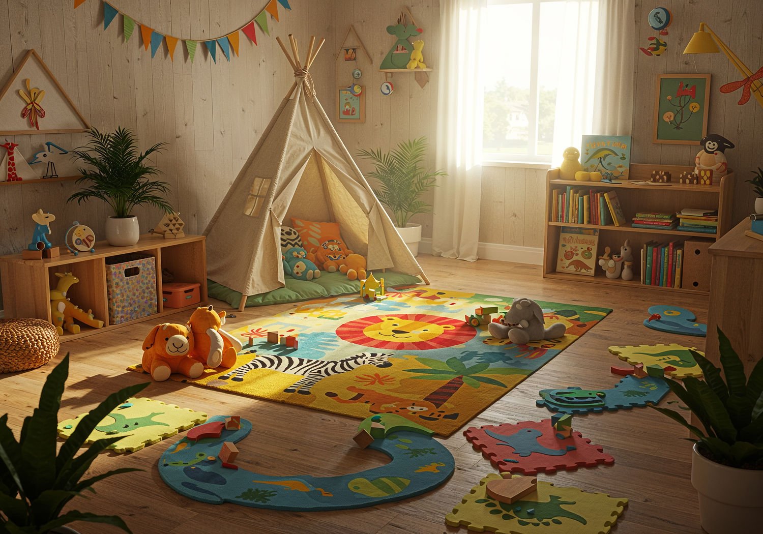 Pokój dziecka to nie tylko miejsce do spania, ale przede wszystkim przestrzeń do odkrywania świata, rozwijania wyobraźni i nauki przez zabawę. Wyobraź sobie, że pod stopami malucha rozciąga się kolorowa dżungla pełna lwów, zebr i papug, a w tle szumią drzewa i słychać odległe ryki. Dywany dla dzieci z motywami zwierząt w jaskrawych kolorach stają się bramą do takiej magicznej krainy. Te niebanalne elementy wyposażenia nie tylko dekorują wnętrze, ale także stymulują kreatywność, zachęcając do rólkowych zabaw i eksploracji. W tym artykule zanurzymy się w świat takich aranżacji, pokazując, jak połączyć dywany z innymi akcentami, takimi jak namioty tipi, regały na książeczki czy kolorowe maty, by stworzyć interaktywną oazę, gdzie zabawa przeplata się z edukacją.